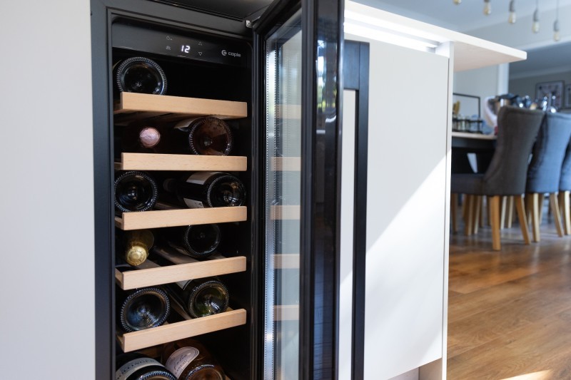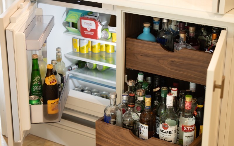 For something a little extra, an under-counter drinks fridge is a popular addition, keeping everything cool and ready to serve without taking up space elsewhere. It’s a simple feature that makes day-to-day life and hosting feel that bit more effortless.