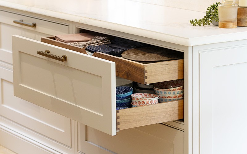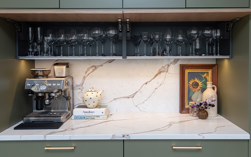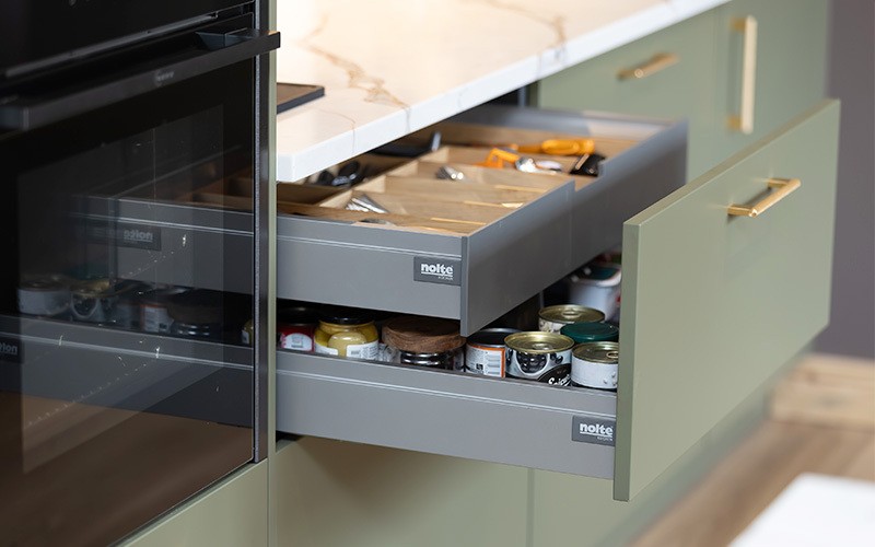 Take, for instance, the kitchen we created for our lovely customers’ cottage. They needed a design that maximised storage and functionality within a limited space while retaining a classic cottage feel. We delivered a solution with a full-sized larder cabinet, clever pull-out corner storage and a dedicated cabinet for tea trays. The cabinets were custom-painted in a charming "Pea Green" with brushed brass handles, and a Bora downdraft hob was integrated to provide modern efficiency without compromising the traditional aesthetic. As the customers shared, "Everyone who sees our kitchen is so impressed. I really love it and find working in there a joy."