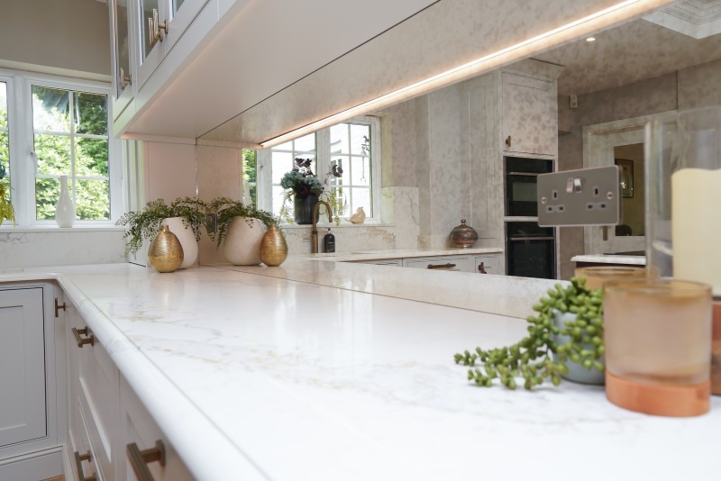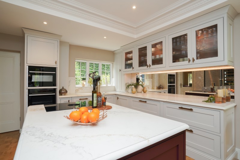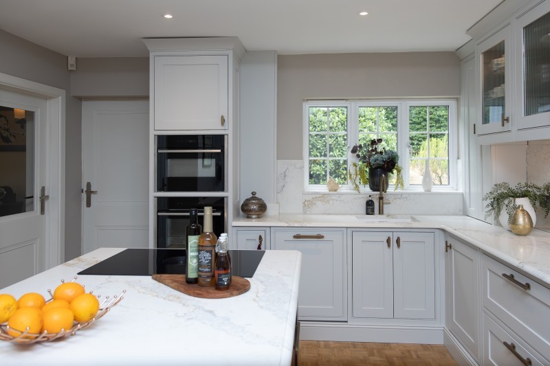 We created this beautiful in-frame kitchen for our client, working closely with them to interpret their vision on how they wanted their kitchen to look and work. The result is a timeless, elegant space with bespoke painted cabinets, high quality appliances and a stunning quartz worktop.